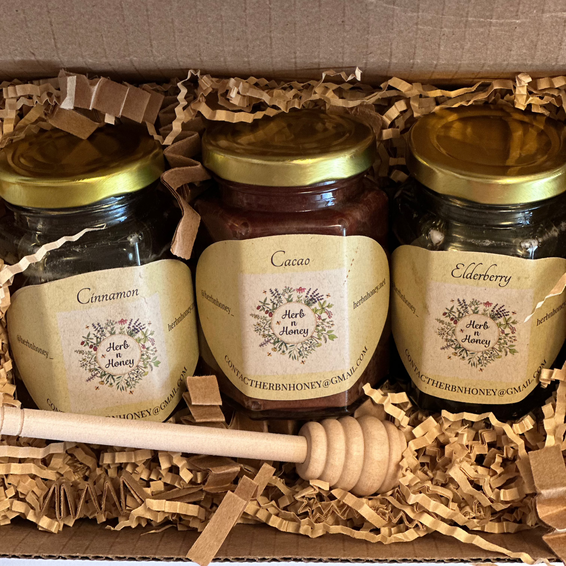 This gift set offers 4oz sizes of our most popular flavors of honey. Enjoy a variety of delicious options in one convenient package. Perfect for gifting or treating yourself to a sweet indulgence. Made with high-quality ingredients for a truly delightful experience.